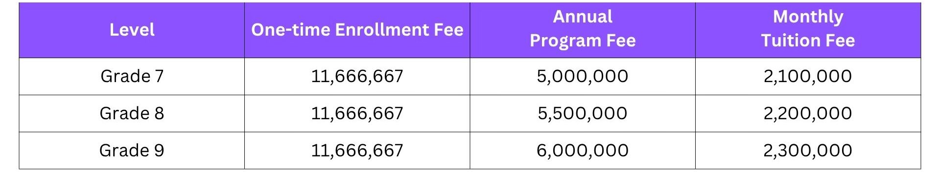 Ujian IGCSE, asesmen A-Level, Program Imersi Luar Negeri, field trip luar kota, kegiatan ekstrakurikuler, dan makan siang.
