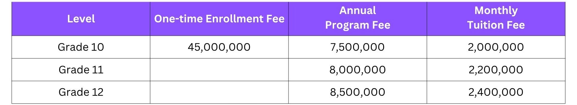 Ujian IGCSE, asesmen A-Level, Program Imersi Luar Negeri, field trip luar kota, kegiatan ekstrakurikuler, dan makan siang.