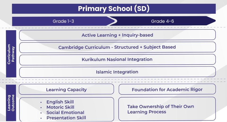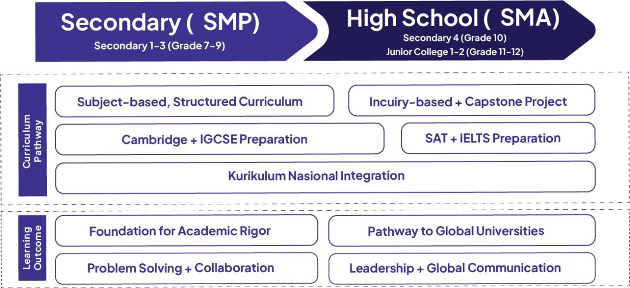 Kreativa Global School mengintegrasikan komponen terbaik IB, Cambridge, Nasional, dan kurikulum Islam yang unik. Memanfaatkan metode CAS dari IB untuk pembelajaran berbasis proyek, Cambridge untuk materi pelajaran, dan menyesuaikan dengan standar nasional untuk ujian nasional.